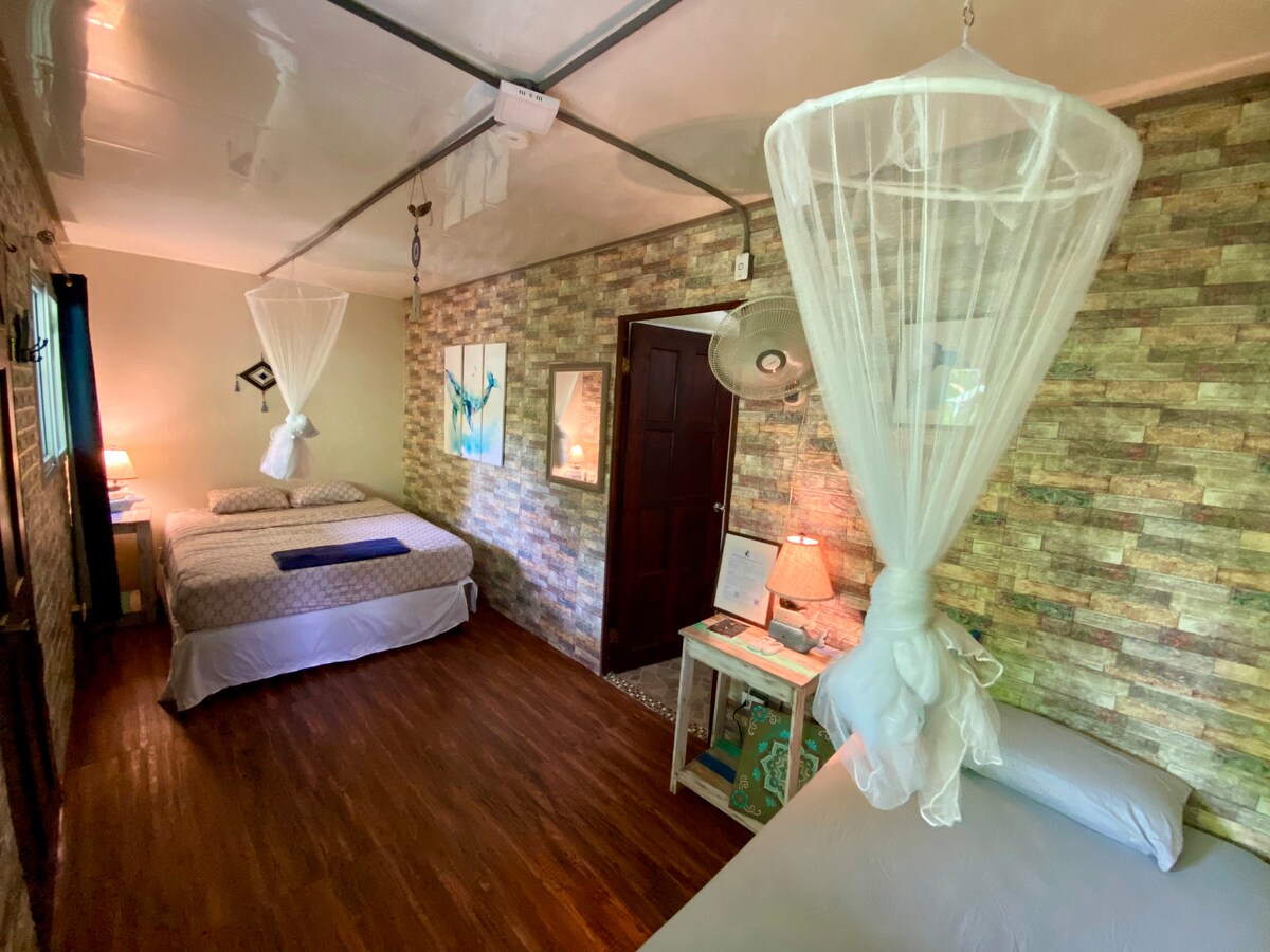 Enjoy the sounds of jungle and ocean by staying in our unique place. We are just a one-minute walk away from the beach of Marino Ballena National Park, small cafes and restaurants. Here you can enjoy the beach from sunrise to sunset, without worrying about distance. If you are a surfer or curious about trying, we have everything available. This is the right spot if you are looking for a peaceful and tranquil environment, as you will be surrounded by birds, monkeys and diverse wildlife.