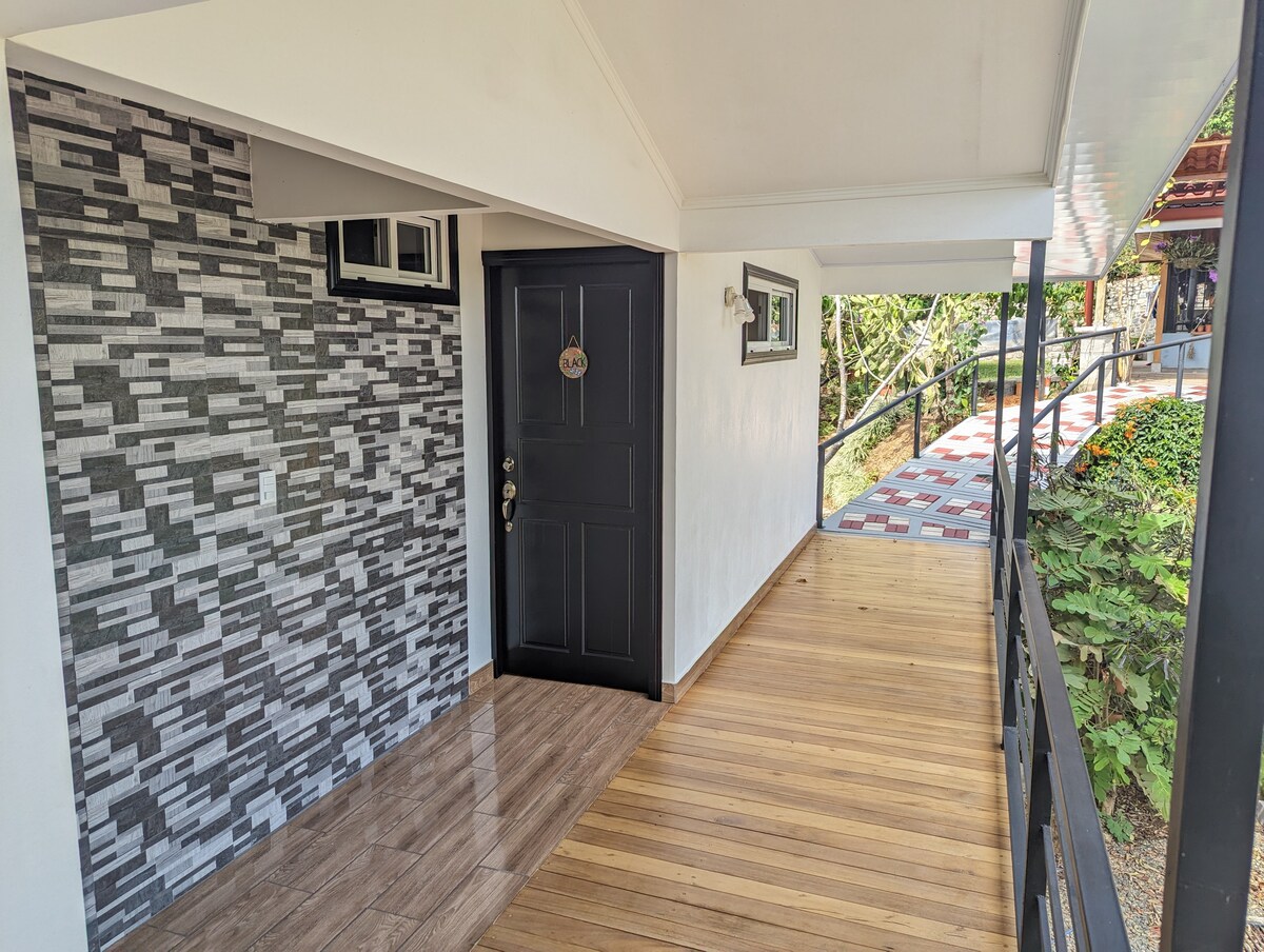 Cozy and fully equipped studio located 4 km from downtown San Isidro de Pérez Zeledón, in the charming neighborhood of Pedregoso. A perfect space to relax surrounded by nature, with spacious green areas and comfortable spots to enjoy both outdoors and indoors, in a safe and private environment. As a guest, you'll have access to a welcoming common area with hammocks, a dining table, and a grill, ideal for unforgettable moments.