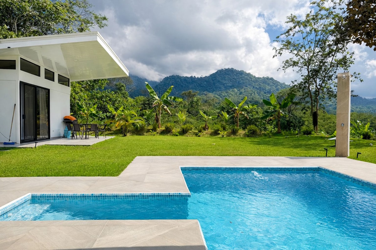 Escape to a tranquil 43-acre retreat in Costa Rica, approx. 1000 feet above sea level w/stunning Pacific Ocean & jungle views. Enjoy open indoor-outdoor living, jungle sounds, a pool for lounging. Accessible by 4x4, it’s near beaches, waterfalls, gyms, stores, banks and restaurants. The host greets guests at arrival and can arrange tours, check availability and make reservations, ensuring a seamless experience. Perfect for nature lovers seeking relaxation and adventure 🐒🦥🌸🌞🌴🦋 🦜