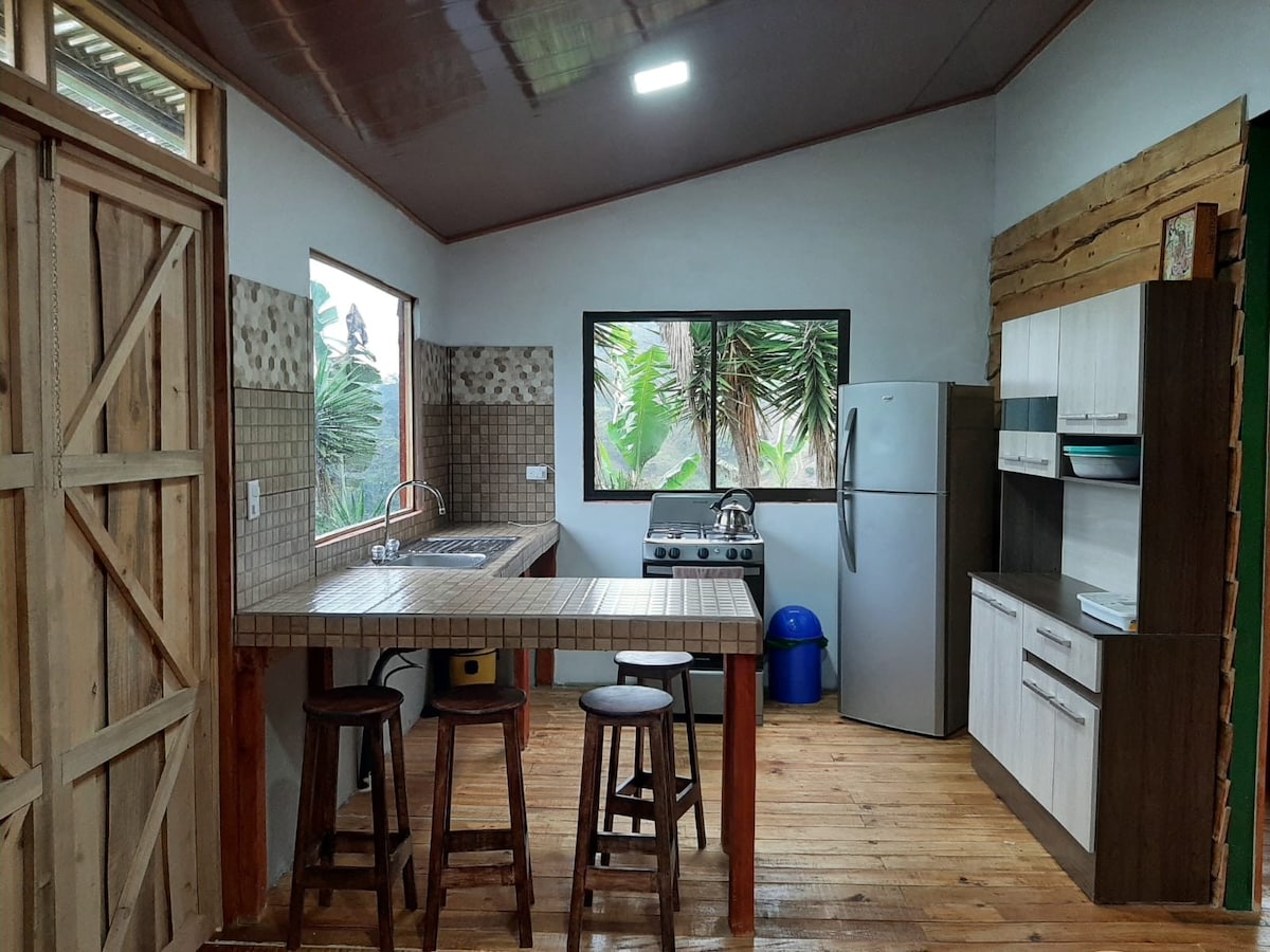 La cabaña esta totalmente equipada, tiene camas para que 3 personas duerman comodamente, además 2 amacas, 1 colchón inflable y zona de camping, por si desea venir en grupo, eso si, debes traer tu propia tienda de campaña y coordinar previamente la cantidad de personas. El hermoso amanecer y vistas al cerro Chirripó te sorprenderán. Despertarás con el canto de las aves y disfrutarás la paz y tranquilidad de la naturaleza. Relájate en familia, amigos o pareja en este tranquilo lugar.