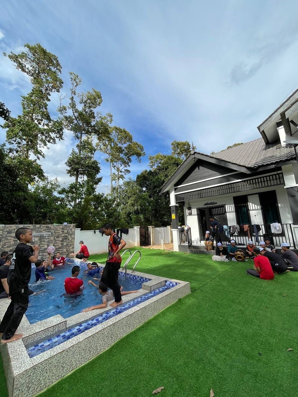 Homestay selesa di Jerteh, Terengganu. Sesuai untuk family gathering. ✔ 4 bilik tidur, 5 bilik air ✔ Private pool ✔ BBQ set ✔ Dapur lengkap memasak ✔ Ruang parking luas ✔️Free Wifi & Netflix ✔️Coway Lokasi dekat kedai, pasar & jalan utama.