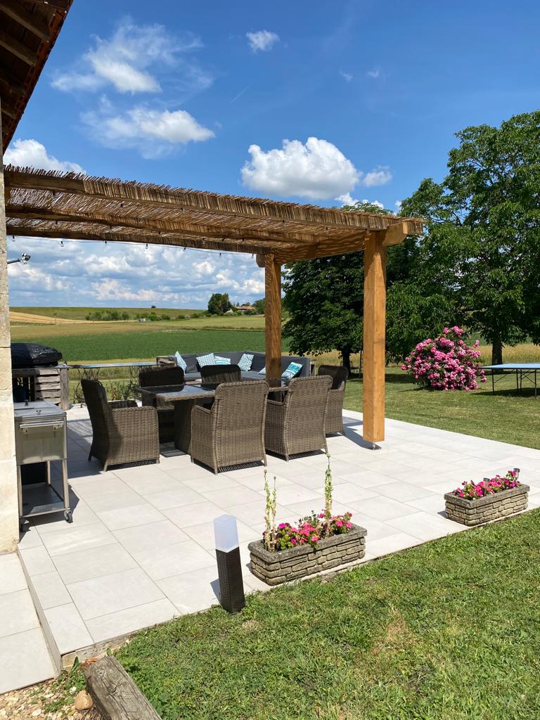 Luxury French gite, just outside the lovely market town of Aubeterre. Newly refurbished to a very high standard, with a large open-plan kitchen/family room , 1 Double & 2 Twin bedrooms (all with private shower room). 10 x 5m HEATED (May and September other times on request at a charge) pool over looking open fields and large patio. Walk into the local village to make use of the local shop for your fresh morning bread and croissants etc, or enjoy rivers, chateau and vineyards further afield.