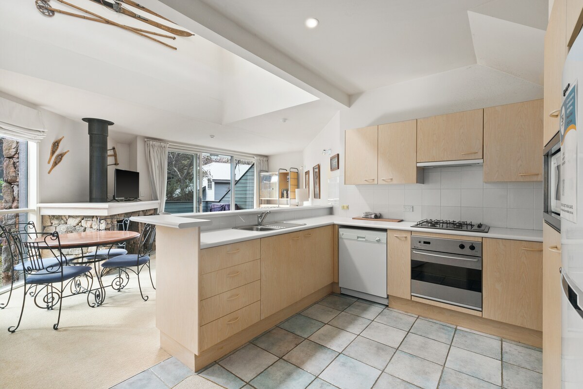 Escape to our luxurious Snowy Mountains retreat, blending designer style with cozy comfort. Relax by the log burner on cold nights with underfloor heating for toasty toes, or soak up summer evenings on the spacious sun deck. Amenities include a chef's kitchen, 65" Smart TV, outdoor bio-ethanol firepit, king beds and a garage for all your gear. Perfect for unwinding after your alpine adventures, The Lodge is located just 35 mins from Thredbo and Perisher ski resorts and 7 mins from Jindabyne.