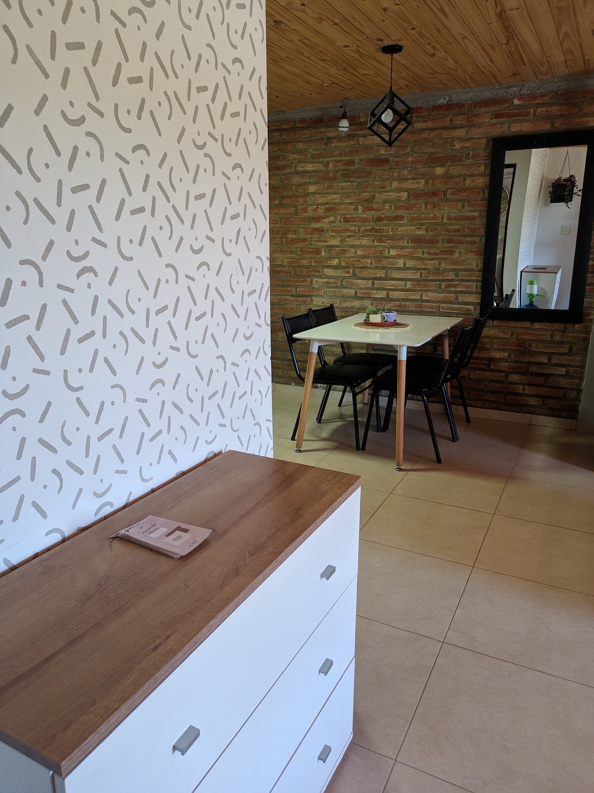 Dpto pequeño, ideal para quienes buscan algo económico. No es apto para personas con movilidad reducida. Cuenta con baño y cocina en planta baja y habitación con cama doble en planta alta. Smartv en ambas plantas. Tiene WiFi, videocable, ropa de cama, toallones, shampoo, jabón. Esta a 50 mts de la terminal y a 700 mts del centro. El barrio es tranquilo rodeado de alamedas.
