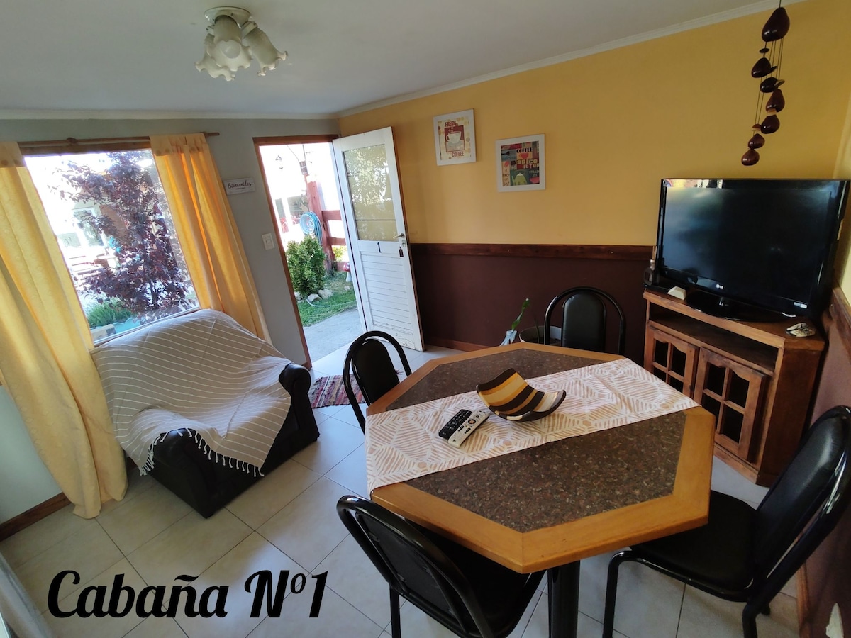 Cálida y luminosa casa artesanal construida en lenga y piedra. Completamente equipada. Ubicada a dos cuadras del centro de la ciudad y frente a la plaza central de la misma. Cuenta con una amplia cocina, living/comedor, dos habitaciones (una con cama de 2 plazas y otra con 3 somieres individuales), un baño y lavadero. Posee un patio privado, amplio y verde, con parrilla y asador, además de mesa y sillas para disfrutar al aire libre. Un excelente lugar para descansar, disfrutar y relajarse.