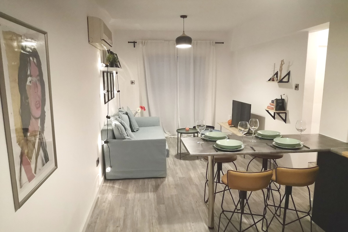 The flat is located in a quiet and well maintained building, in a no through beautiful road, 5-10min walk from Finikoudes promenade and beach. Large living room with a sofa bed, kitchen, a bedroom, bathroom renovated in Nov 24, balcony with distant sea view. The center and the main bus terminal is a 5 min walk, so if you don't rent a car, you will still be in the middle of everything. 200/30 Mbps internet. Zorbas bakery & ready meals is across the street. To see more flats, go to our profile