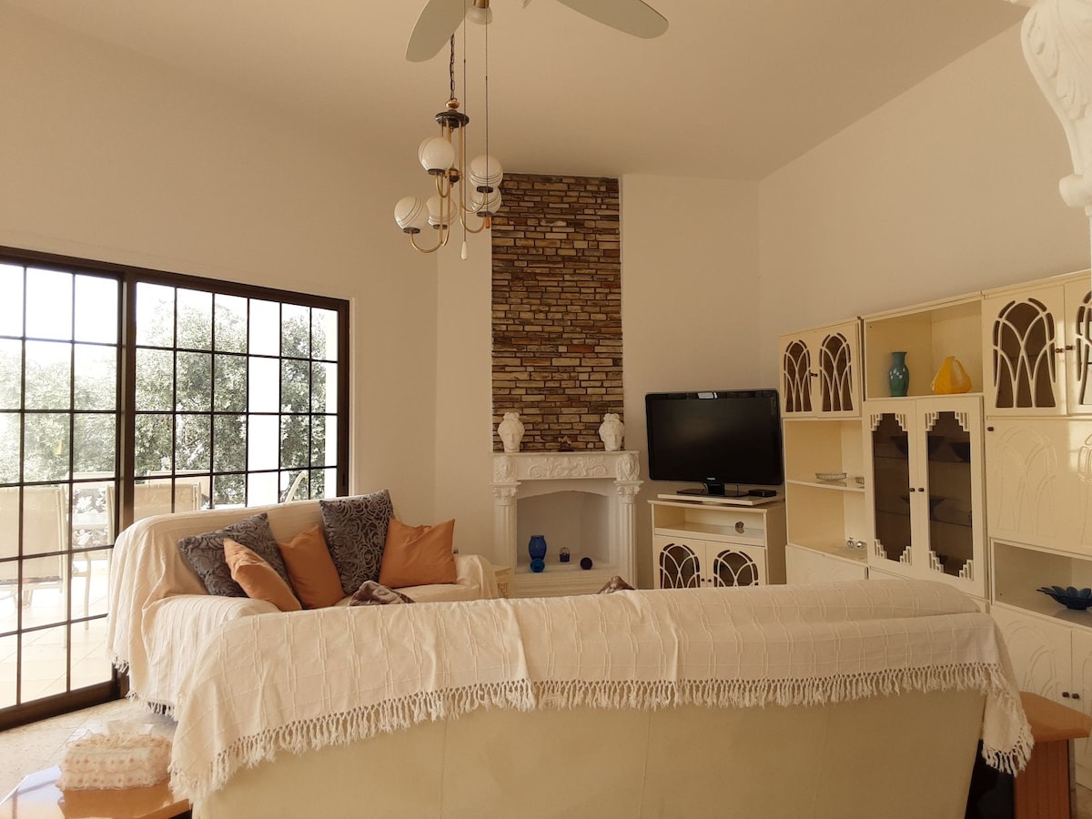 Discover this serene haven where indulgence meets tranquility. The estate features flowing indoor-outdoor living spaces, expansive terraces, a covered patio dining area with a BBQ , a big pool and a huge mediterranean garden. The villa has also billiards and table tennis. Finally for a more luxurious and enjoyable stay villa has a jacuzzi and sauna by payment. In the villa there is an exhibition of paintings. You can contact the hosts if you are interested in purchasing any of the paintings.