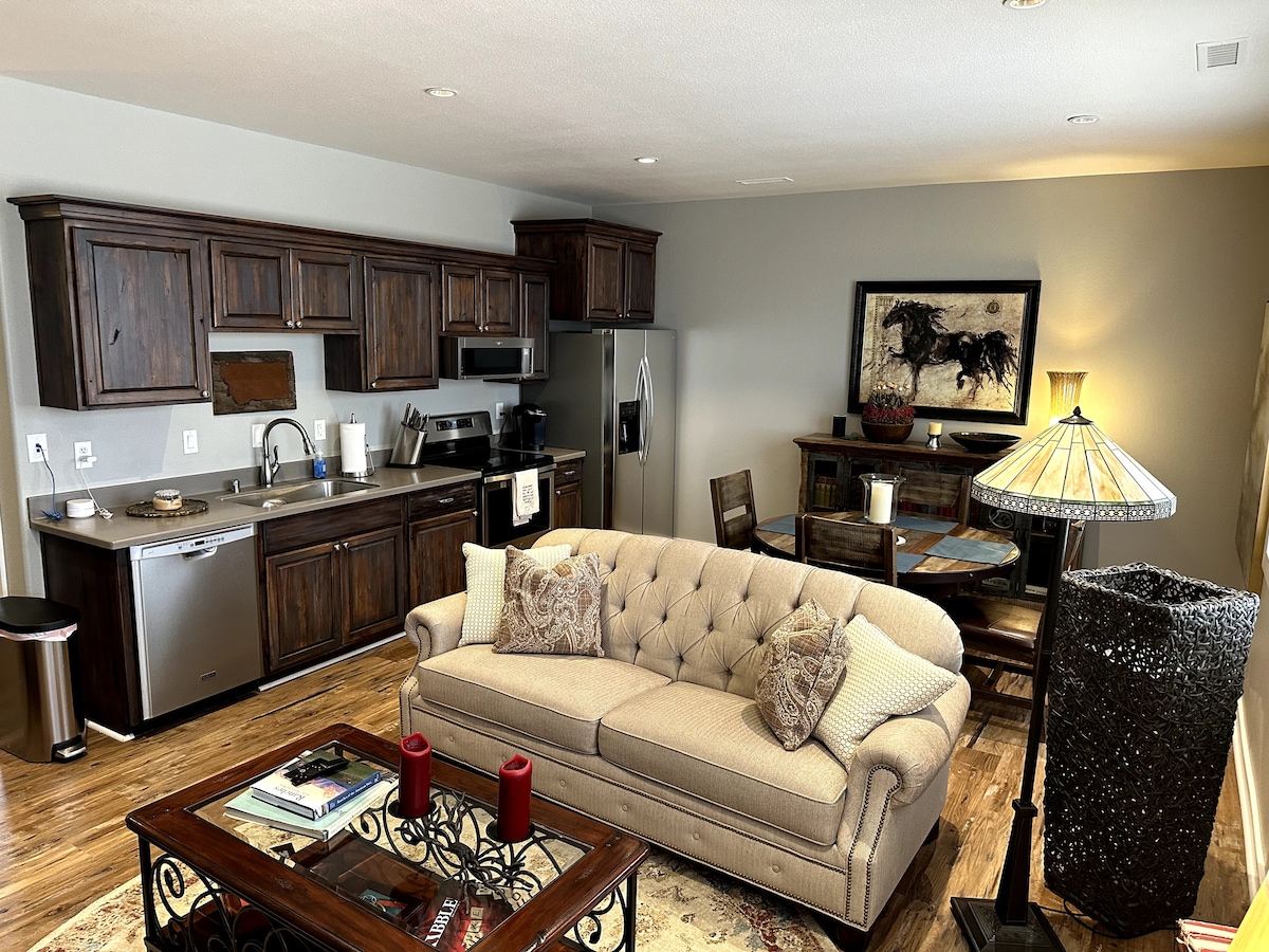 Come stay in our beautifully renovated 1-Bedroom "garden" cottage with spectacular views of Jerome, Cleopatra Hill and the Black Hills. This special home was featured on the Do-It-Yourself Network's "Boomtown Builders" show ("The Dentist's House), enjoy all the beautiful details tv host - master craftsman, Tim McClellan, and his crew created and installed, such as the dreamy headboard and nightstand made of reclaimed timbers, the hand-forged stove hood & electrified cutting board.