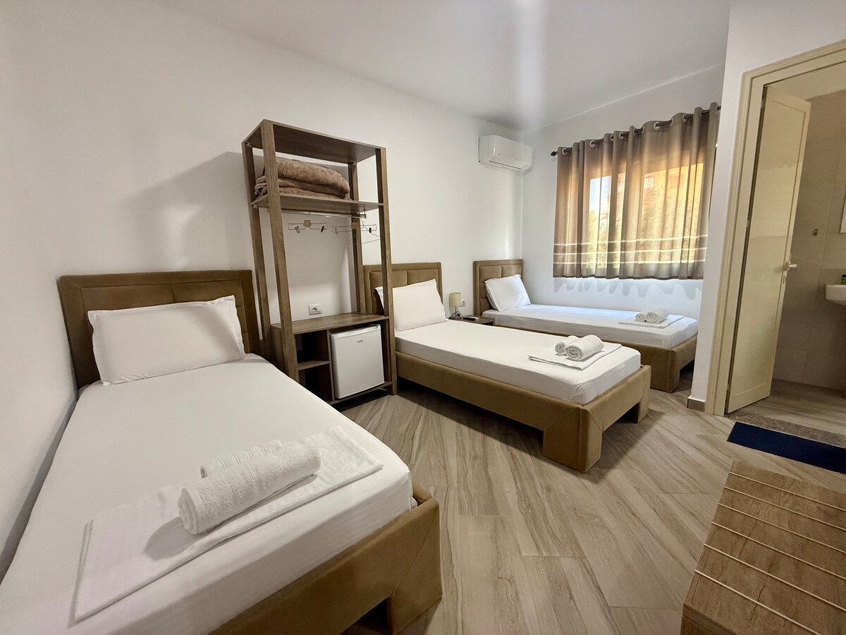 Hotel Ana Permet offers four double rooms, four twin rooms, two triple rooms, and two quadruple rooms. All rooms are comfortable, spacious, and bright, with en-suite bathrooms, TVs, and air conditioning. Free Wifi is available in every room and in common areas. The quadruple rooms have a kitchenette, and guests in the double, triple, and twin rooms can use the shared kitchen on the first floor.