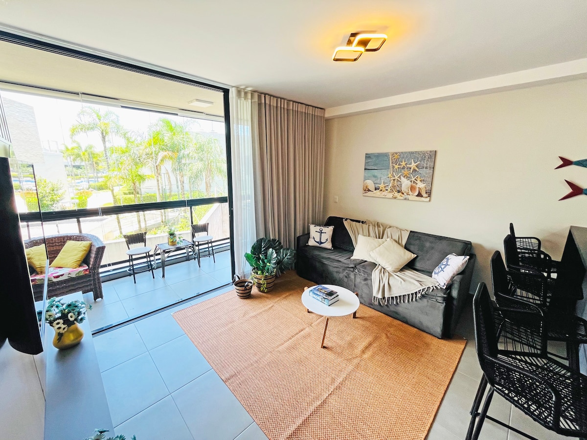 Enjoy the serenity of the seaside in this cozy apartment in Pitangueiras Guarujá. With stunning panoramic views it offers beach service, modern décor, new appliances and kitchenware, and a garage. Relax in the bright living room or on the balcony with the best ocean views. A fully equipped kitchen and a 55-inch smart TV are included. Whether for a family vacation or a romantic getaway this seaside retreat is the perfect choice. Book now and immerse yourself in the beauty of Guarujá's best beach.