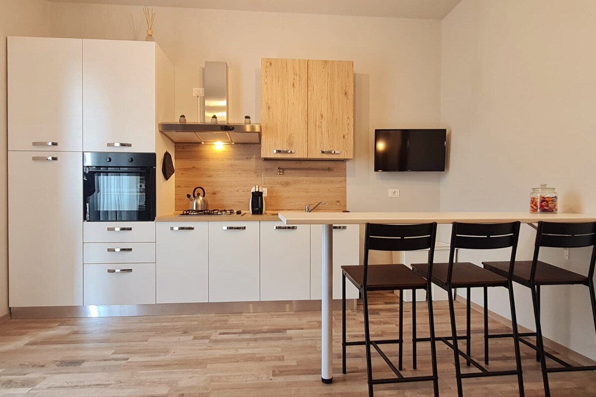 Brand new Luxurious apartment in the centre of Como, overlooking the lake. Positioned next to the famous Piazza de Gasperi where you'll find the Funicolare to Brunate, lake's fairy and restaurants. The modern designed condo is on the Second floor with an elevator directly to the apartment. Large bedroom with double bed, fully equipped kitchen, Italian style living room, sunny balcony and bathroom with shower. Experience the Italian prestige lifestyle of Como while relaxing with the lake's view.