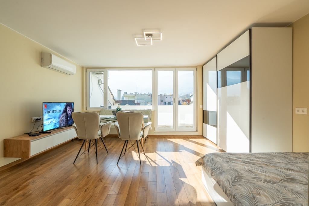 Stylish and quiet studio apartment, with a wonderful terrace and direct mountain view. Located 20 min with tram from city center, this apartment is an ideal way to experience the peace and quiet at the foot of Vitosha Mountain. The neighborhood has wonderful local restaurants as well as quiet and peaceful cafes. Please do not hesitate to ask your hosts for any sightseeing and dining/nightlife suggestions, as they will be happy to help and provide a unique local insight into this fantastic city.