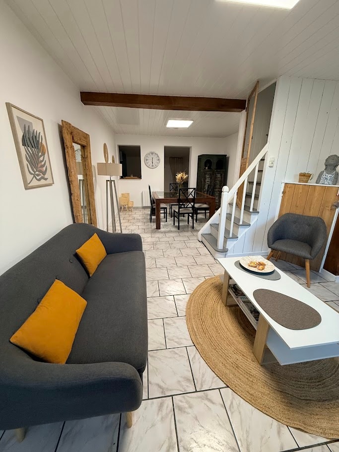 Charming place in the center, fully refurbed. Ideal to spend a night (travel, wedding) and very pleasant to stay longer. 3 bedrooms, 2 bathrooms, big living room with an open kitchen and convertible sofa. You will love this mix of modern and rustic atmosphere. 10km from Amiens, 2h from Paris, 1h from the sea. Perfect to discover the region (the coast « Baie de Somme », Amiens city, 1st world war sites, Naours caves, walking and cycling trips...)