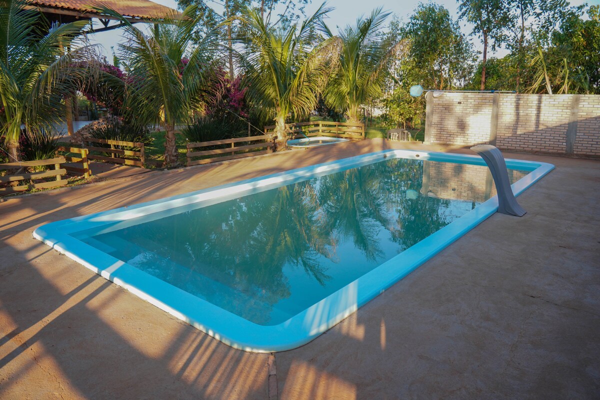 Leve toda a família a este ótimo lugar com muito espaço para se divertir. A chácara possui piscina, parquinho, espaço para eventos (aniversário, confraternizações, outros), com ampla churrasqueira, lugar tranquilo e lindo para fotos, em meio a natureza. À 12 Km de Umuarama, com fácil acesso. Possuí uma casa com fogão industrial, geladeira, freezer, televisão e bem equipada (louças, talheres, panelas, etc...), tem disponível mesas e cadeiras. Linda vista para a natureza!