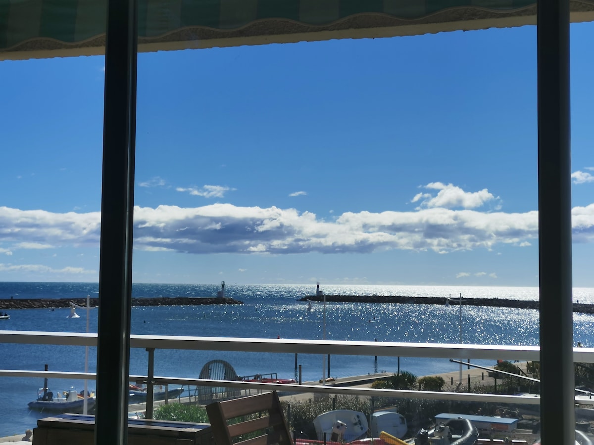 T2 traversant avec grande véranda, lumineux, vue magnifique du port, à 5 min à pied de la plage. Toutes commodités à proximité immédiate, restos, commerces, marché. Lit 2 places et canapé convertible avec couchages de qualité. Cuisine équipée. Douche à l’italienne. WC séparés. Pièce de rangement en sus. Parking privatif gratuit (Stationmt payant à Carnon) Garage à vélos. Fournis : - Draps coton (lits faits avt votre arrivée) - Serviettes de toilette - Draps de plage et parasol - Sèche-cheveux