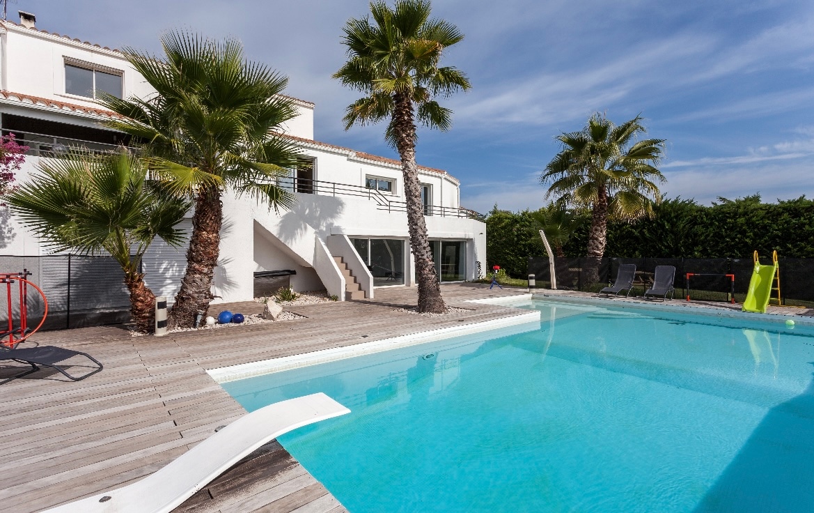 ECRIN DE VERDURE Logt de 60 M2 ( salon , cuisine , 2 ch, 1 SDB + 1 WC ind.)situé au Rez de chaussée d'une maison avec terrasse privative. le terrain de 28OO M2 et la piscine sont en commun avec les propriétaires. Situé à 2 pas de Montpellier ( 15 minutes) et de la Mer dans un village médiéval. Toutes commodités pour commerces et transport en commun. Prêt de vélo gratuit. Randonnées sur place. Accés aux équipements fitness + trampoline + table sous les pins......Log idéal pour famille.