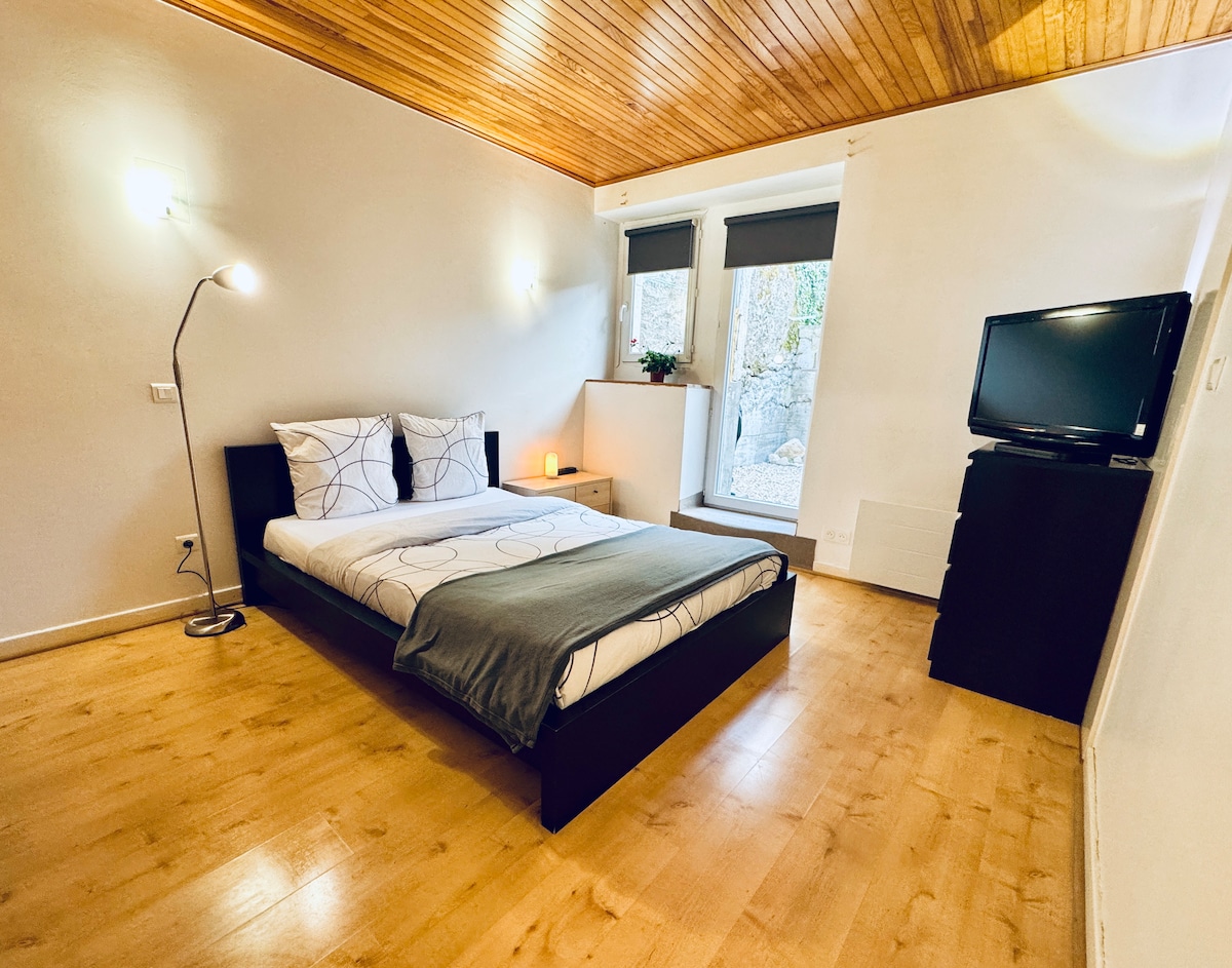 Gabrielle et Benjamin vous accueillent dans l'ancienne grange de leur maison qu'ils ont aménagé avec soins pour la transformer en un studio lumineux de 27 m2. La décoration est résolument contemporaine et colorée pour la pièce de vie et néo-rétro pour la salle de douche. Le coin cuisine/repas dispose de l'essentiel pour réchauffer ou cuisiner des mets simples. Situé dans le hameau de Ballon qui surplombe la ville, il vous offre calme et confort pour vos séjours de 2 nuits minimum.