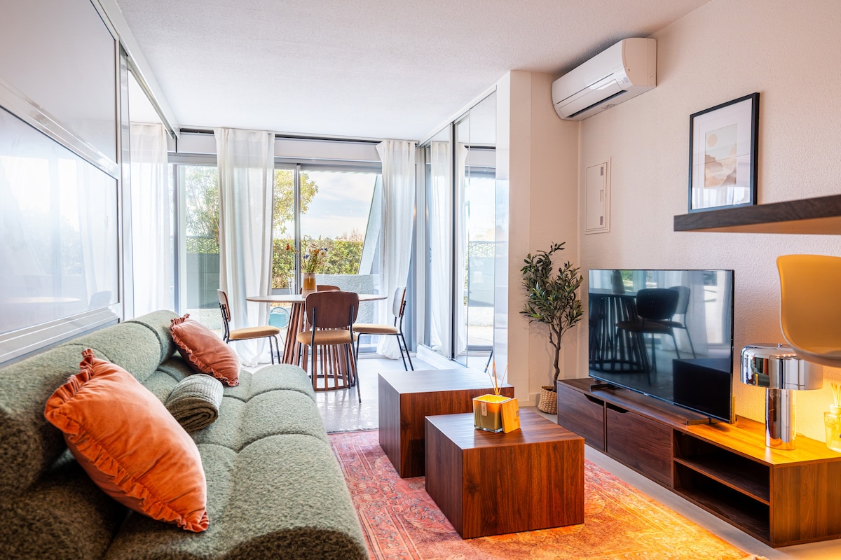 Profitez d'un logement élégant et central. Relooké aux gouts actuels - esprit écologique - Oasis de fraicheur - Que vous arriviez en gare de Perpignan ou par n'importe quelle sortie d'autoroute vous serez idéalement situé pour repartir : soit en centre ville à pied : 5 mn à pied de la place Catalogne - soit en direction de la gare : 3 mn à pied du centre du Monde - vers les plages : 12 mn en voiture : Canet plage ou Ste Marie . La gare routière est à 3 mn également.