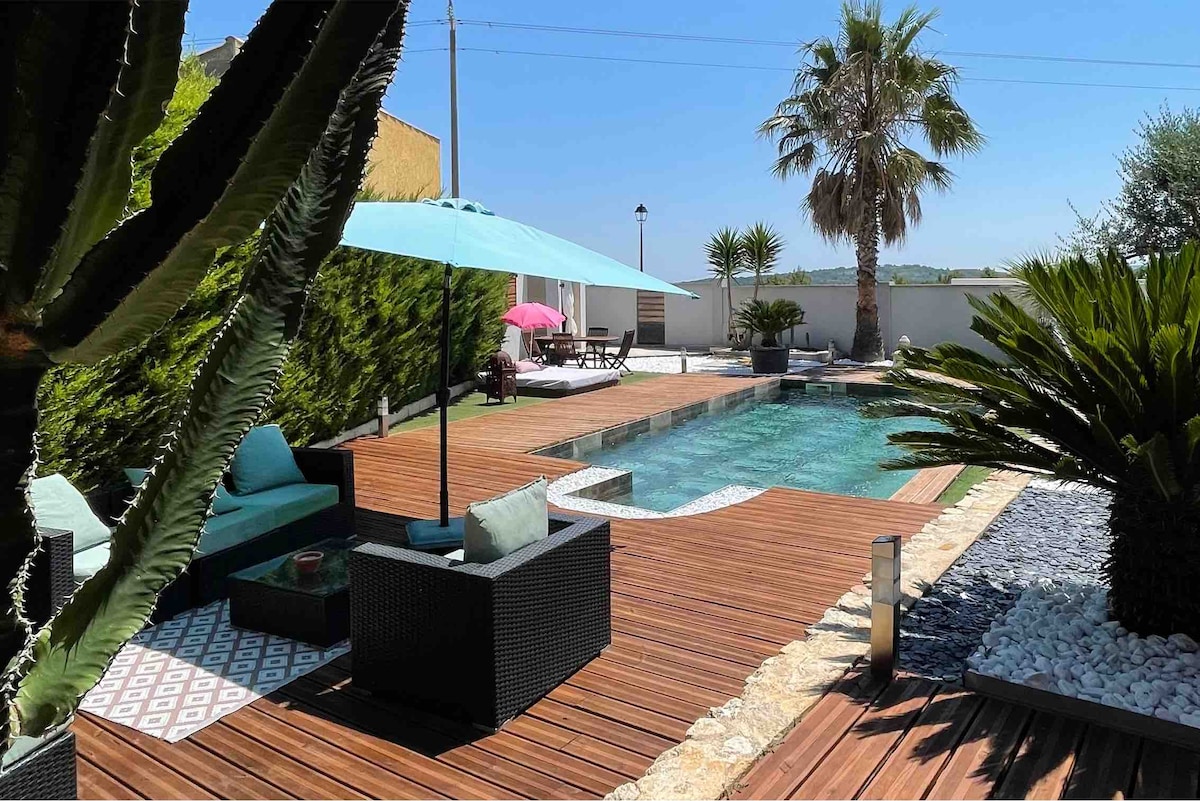 距离格鲁瓦桑海滩5分钟的泳池别墅