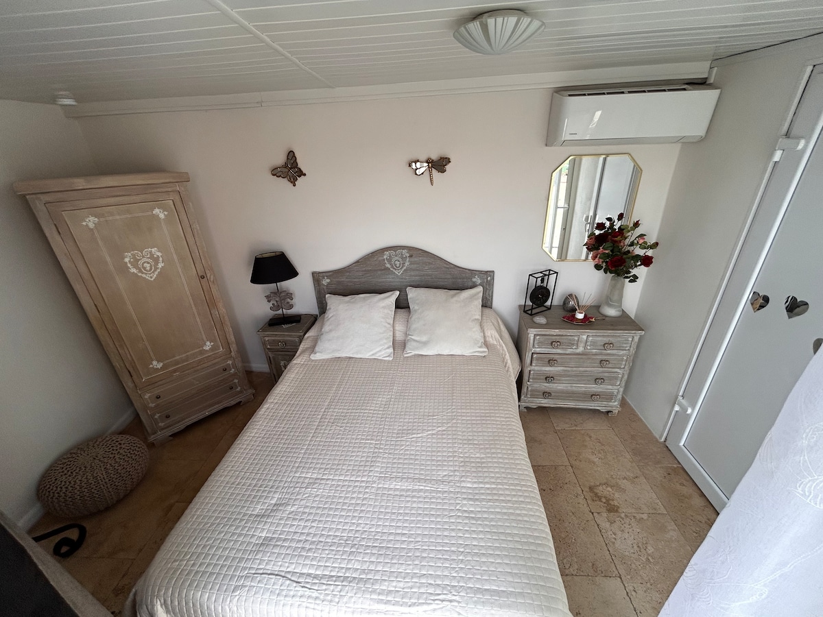 Logement 27m2, en Rez de jardin. Séjour avec 1 convertible 160 x 200cm et 1 chambre climatisée, avec un lit 160 x 200cms. Salle de bain, douche italienne, wc. Barbecue sur un jardin terrasse, le tout réservé exclusivement aux voyageurs. Le linge de lit est fourni: Draps, taies d'oreillers et couettes. Serviettes, Torchons. Gel douche . Et pour la cuisine: Sel, poivre, sucre, thé. Cafetière filtre + cafetière Tassimo. 2 cafetières.