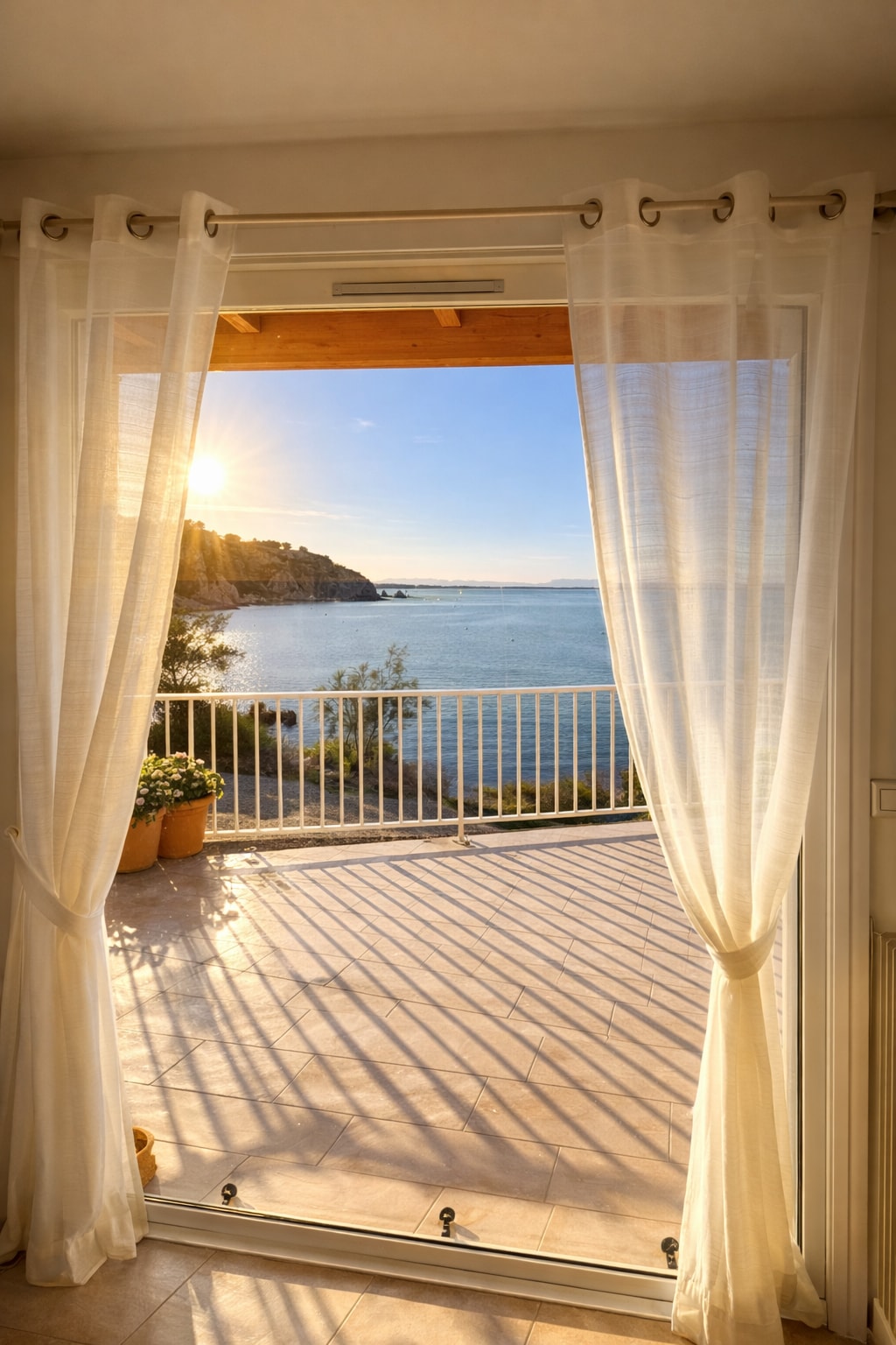 Romantic Tower apartment in a historic château with both a private balcony and a private terrace for outdoor dining and unforgettable sunsets. Enjoy breathtaking views of Perpignan and Mount Canigou. The bedroom with original oak beams, high ceilings, light-filled windows, and original artworks creates a magical stay for couples, artists, or remote work. Fully equipped kitchen, spacious living, and dining chairs once owned by French actress Sophie Marceau add unique elegance.