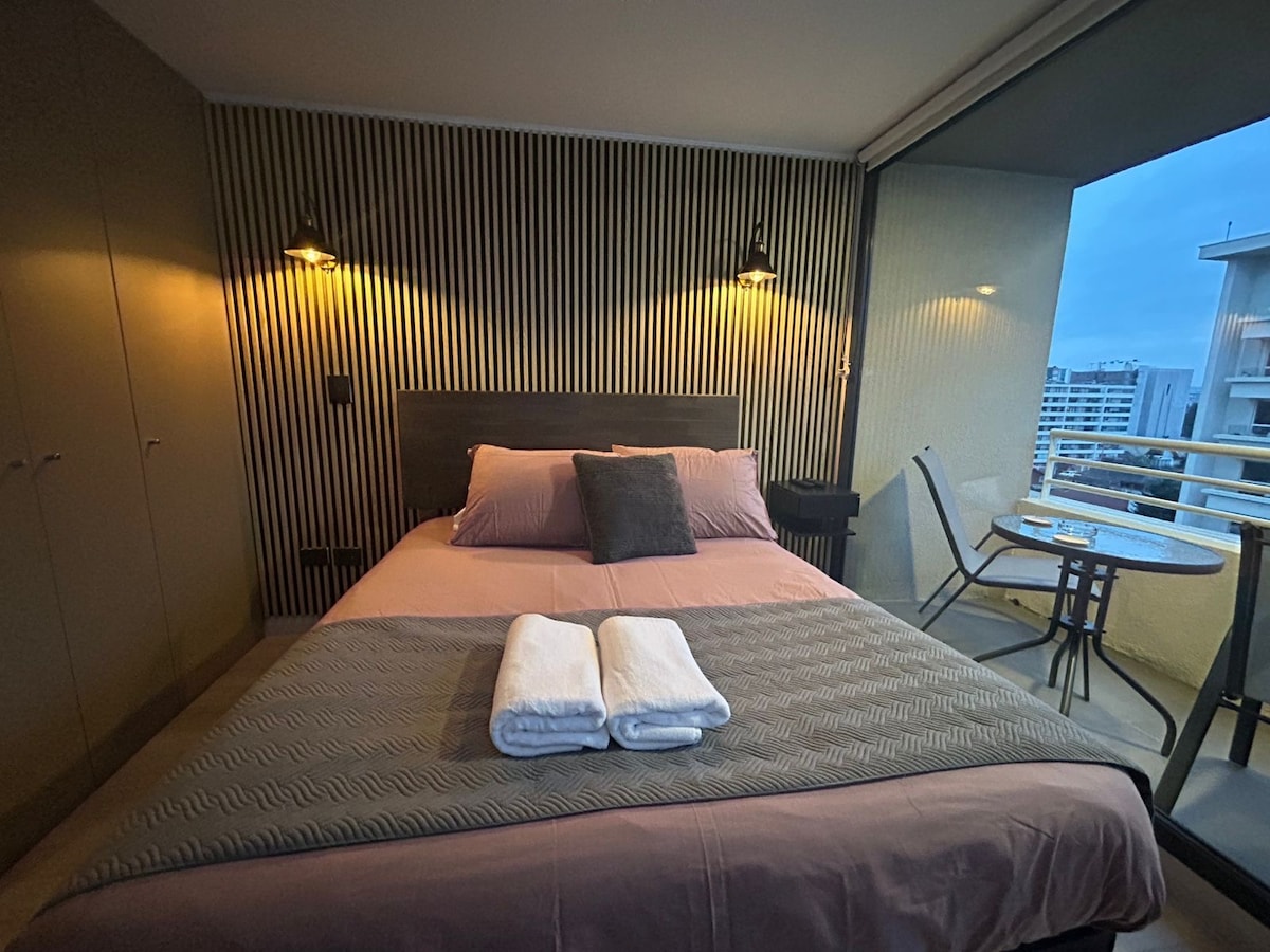 Te invitamos a disfrutar de la calidez y confort de nuestro alojamiento, el cual se encuentra cómodamente acondicionado para dos personas, a pasos de avenidas con relevancia comercial, supermercados, clínicas, lugares de esparcimiento , estadio, parques y plazas. Disponemos del siguiente equipamiento: Electrodomésticos y elementos de cocina básicos esenciales, Dormitorio totalmente equipado, toallas y otros. Ideal para Home Office. ¡Ven a disfrutar, te esperamos!
