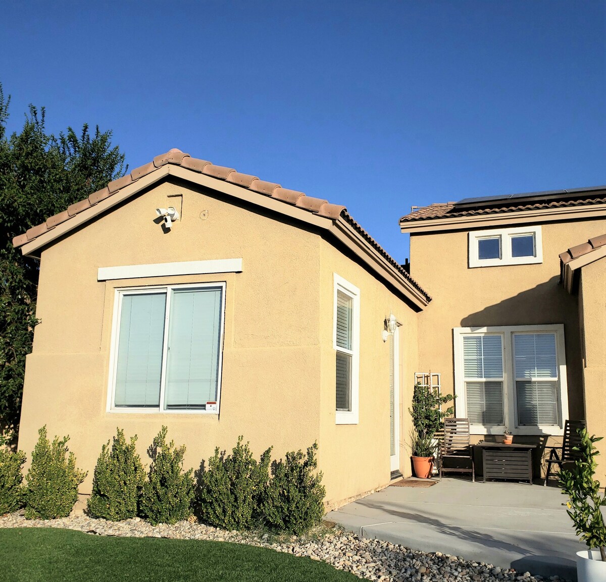 Enjoy this beautiful private little house that is separate from the main house. It has parking included inside the property,and more outside on the street. Quiet, central, and private. 10 minutes from Lake Perris, Toro Wapo, just 4 minutes from Freeway 215, shopping center 2 minutes from shops and restaurants. If you are a fan of adrenaline, Skydive Perris is 7 minutes away. Netflix and live channels on both televisions a/c and heating.
