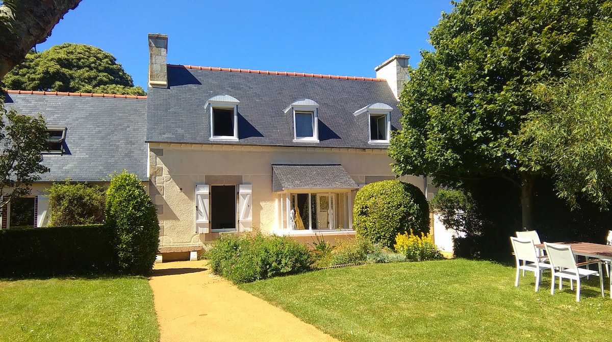 Le plus bel endroit du monde! Plage de Trestrignel. Si vous avez envie de calme, de nature...alors ce logement est pour vs. Vs serez sur votre terrasse en bois de 25m2 avec vue mer. Vous dînerez à l intérieur avec vue mer. Vous êtes à 2 pas de la plage! Matelas top qualité (LIT FAIT PR VOTRE ARRIVÉE ). A 1,5km du port ou du bourg, sur place 2 restos(en saison). Le studio est dans notre maison, le bruit quotidien doit donc ne pas vous gêner, mais ns sommes discrets.L'entrée est indépendante.