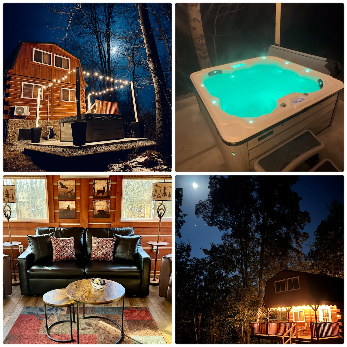 Welcome to the quieter side of hocking hills where you'll escape the hustle in exchange for a cabin in the woods - privacy, seclusion, and beautiful views to enjoy at sunrise, sunset, and everything in between. Designed intentionally to provide guests with a relaxing, calming experience, you will leave your getaway feeling refreshed and renewed. Your hardest decision will be whether to warm yourself by the cozy fireplace or to relax in the bubbling hot tub!