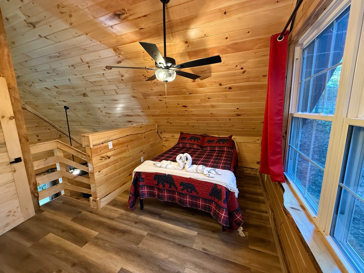 Brand New! Cozy Log Cabin, Hot Tub, fire pit