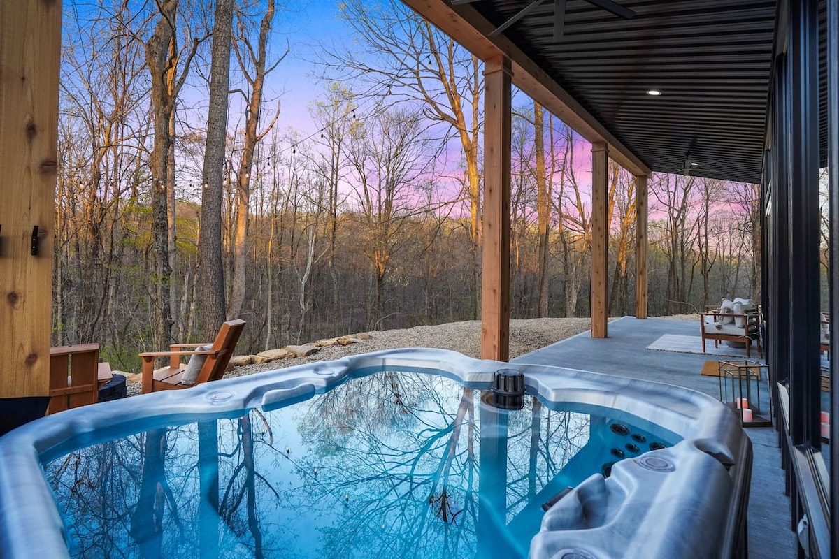 Why you'll ❤️ Hidden Escape: ・Luxurious, private & modern home nestled in the woods ・Secluded hot tub with scenic views ・Fire pit under the stars ・High-end full kitchen with stylish finishes ・King-size bed with panoramic windows ・Fast Wi-Fi + Smart TV with streaming apps ・Spa-like bathroom with double vanity ・Peaceful, wooded location in Hocking Hills ・Perfect for couples or solo travelers Click "❤️ Save" to easily find us again. Read the full listing for all the relaxing details!