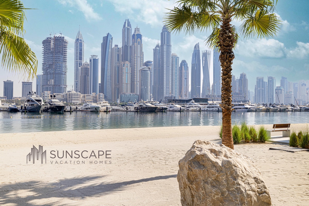 Stylish and elegant 2BR in Dubai’s Emaar Beachfront, private and LUXURY area. It can comfortably accommodate 5 guests. Fully equipped apartment with PRIVATE BALCONY for relaxing sunsets with stunning views of the Palm Jumeirah skyline. Perfect for families or couples seeking luxury comfort by the sea. Guests have access to the community area available for the residents only: POOL, BEACH, children's PLAYGROUND, GYM, BBQ zone and private parking.