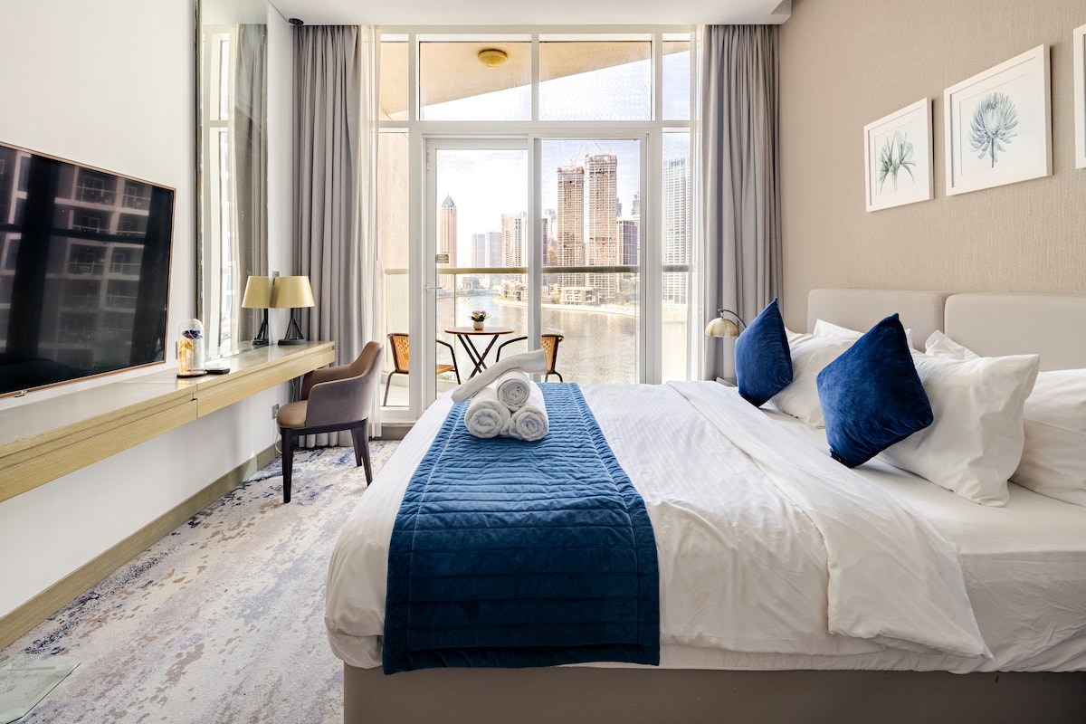 Stay in style at this signature 2BR on the 40th floor of Vida Marina, designed by Novity. Perfect for couples, business trips, or quick getaways. Enjoy stunning marina views, high-speed Wi-Fi, smart TVs, a full kitchen, and access to 5★ hotel amenities including a rooftop pool and gym. Walk to the metro, beach, restaurants, and shops. Located in one of Dubai Marina’s most iconic towers , where luxury, comfort, and convenience meet.