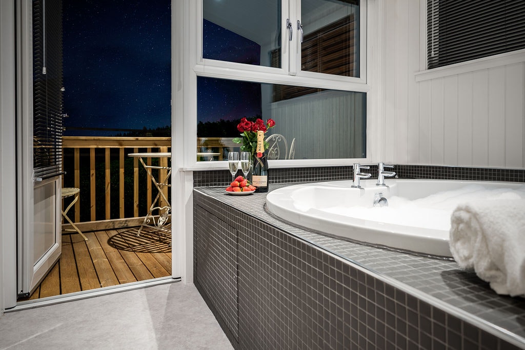 带室内按摩浴缸的豪华水疗度假屋