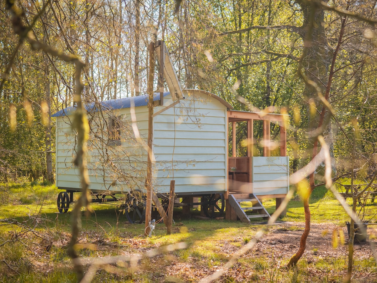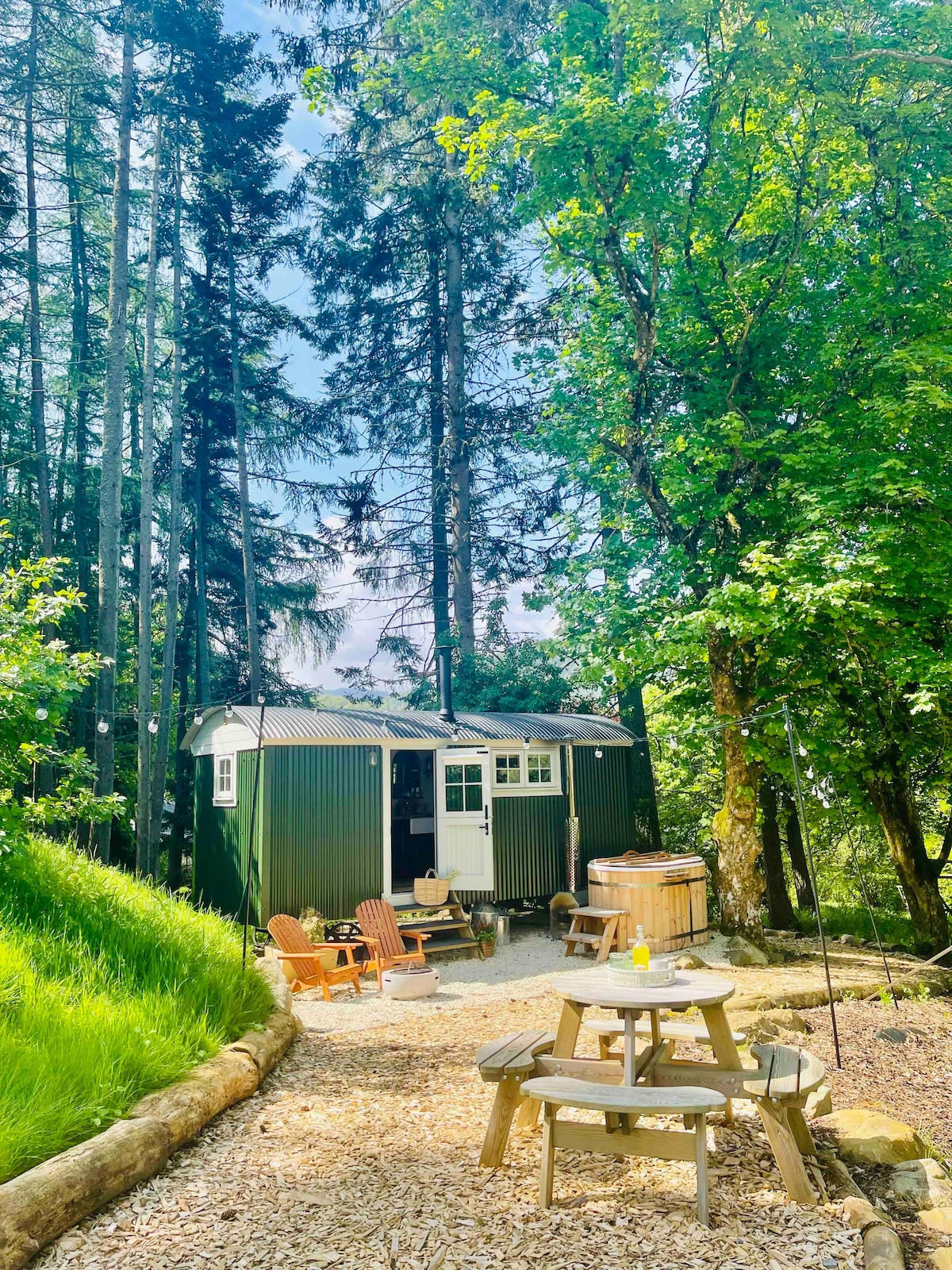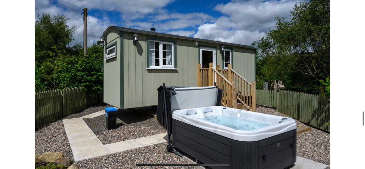 Our cosy and modern (it has electricity and running water, fridge) shepherd’s hut has two rooms- perfect for couples or small families. A double bed in the main room, with wood burner, table and sofa. The back room houses a single sofa bed, perfect for a wee one. Outside there’s a hot tub, kitchen with gas hob and BBQ. There’s a secluded outdoor shower under the trees and a modern compost loo. We also have a larger lodge if groups are bigger (sleeping up to 10): https://abnb.me/vZfzWpwUiT