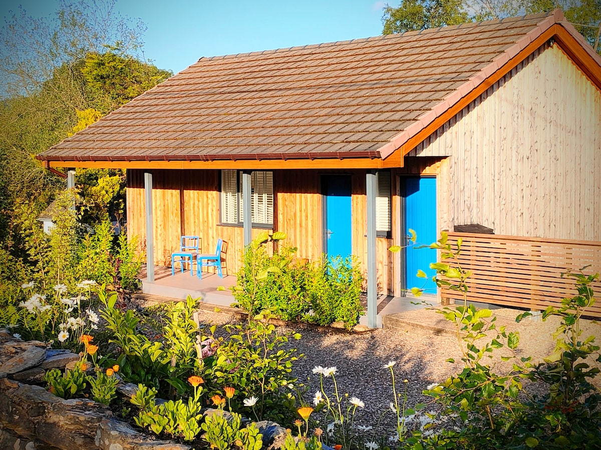 Peaceful quiet, pet-friendly log cabin with enclosed garden. Surrounded by woodland and wildlife just a 10 minute walk from town. Open plan living space. Well equipped Kitchen. 50" Smart TV, Alexa speaker, and Xbox. Comfortable double bed. Secure outdoor seating with fire pit & BBQ. A 10 -15 minuite UPHILL walk from the town centre. The Cabin is located in an enclosed part of my garden & I live in the property next door. Shared driveway with guest parking directy outside the cabin.