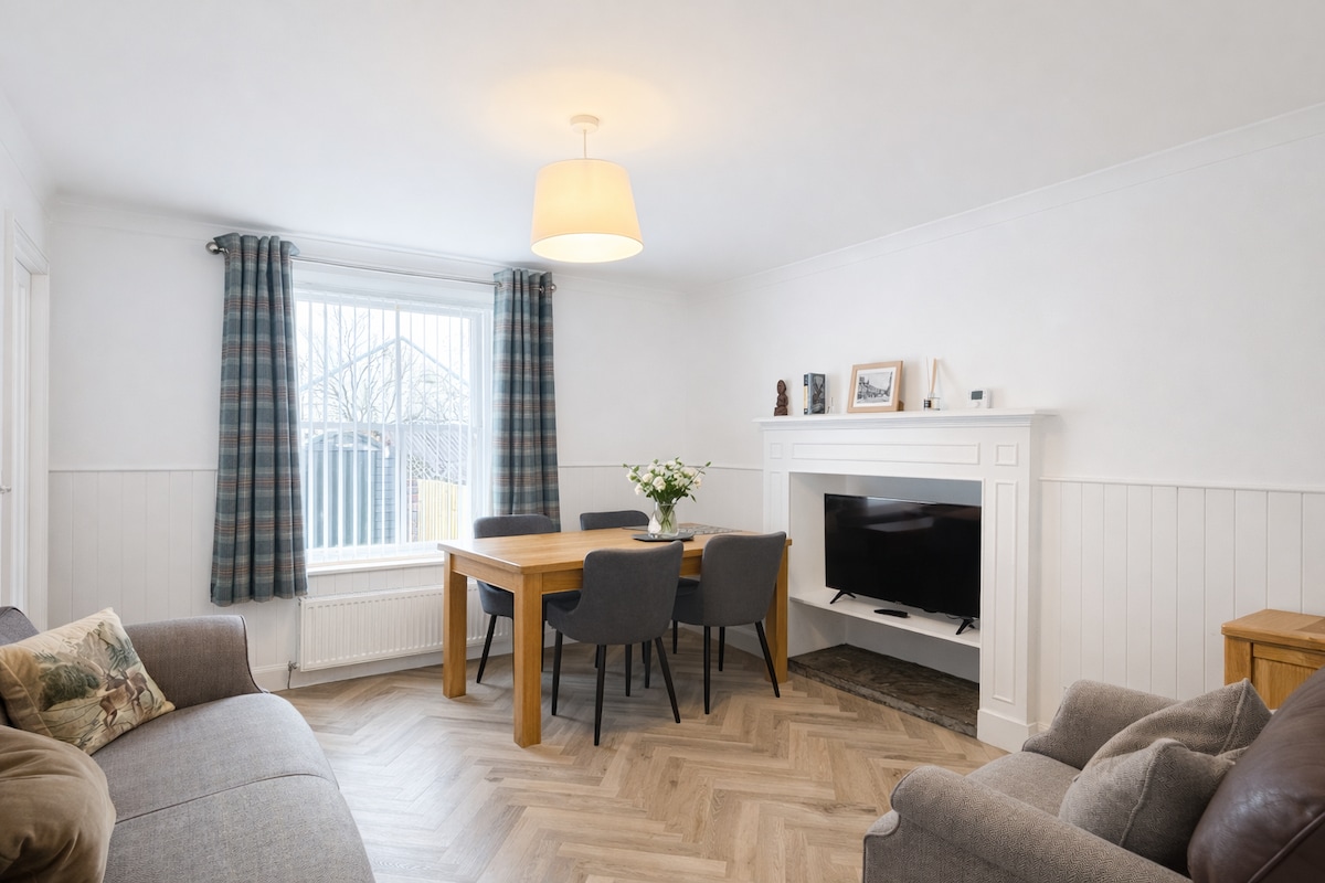 Relax in comfort at this cosy, one bedroom house, just 5 minute walk from Blairgowrie town centre. Styled with subtle Scottish-themed touches, the house is designed for couples or solo travellers seeking exceptional sleep in the super king-sized bed, a calm and welcoming space and an ideal base for exploring Perthshire- including guests travelling with well-behaved dogs. Free parking too If you’re visiting family, having a break or exploring the hills, this home offers a memorable peaceful stay