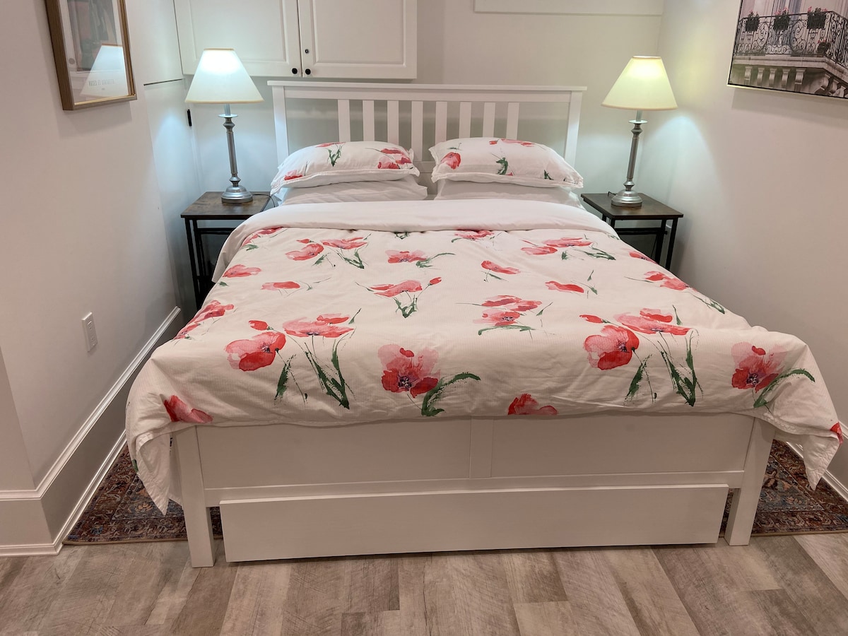 Our cozy basement suite is your home away from home. This newly renovated suite is relaxing and equipped with a very comfortable bed, a hot steaming shower, a soft sofa, and a Smart TV to help you unwind after a long day. The suite is: - Steps away from Costco Wholesale - Steps away from restaurants - A 5-minute (or less) drive to Highway 417 - A 20-minute drive to downtown Ottawa
