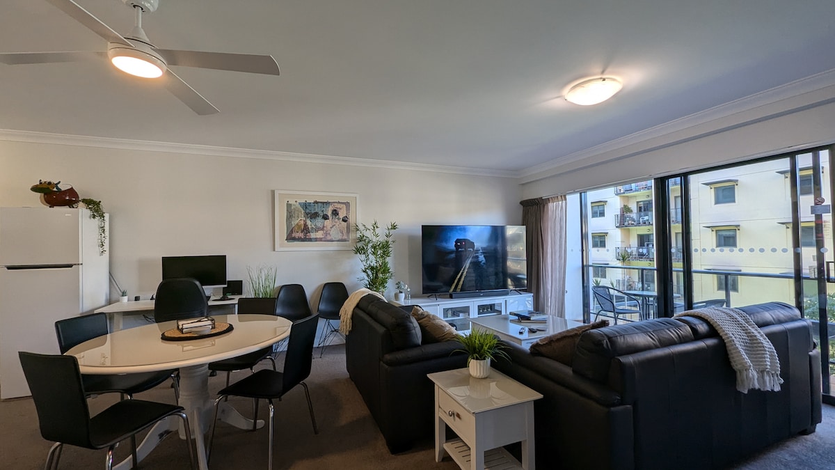 Enjoy city living in this modern 1-bedroom apartment with a queen bed and a comfortable sofa bed in the living room. Relax on the private balcony with stunning city views, take a dip in the pool, or work out in the gym. The apartment features fast Wi-Fi, smart TV, and a fully equipped kitchen. Walking distance to RAC Arena, Elizabeth Quay, and train station. Perfect for couples, families, or business travellers.