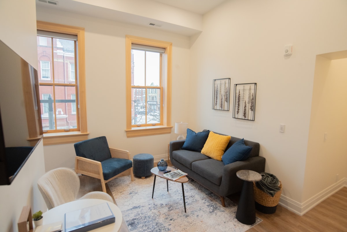 Art-Deco Studio Loft: A Blend of Historic Charm & Modern Luxury. Enjoy the unique mix of classic brick facades and modern design in this studio loft, featuring two Queen-sized beds, WiFi , and ensuite laundry. Just a stroll away from Stratford’s downtown cafes and shops, and a short walk to the tranquil Lake Victoria. Perfect for those seeking a luxurious , comfortable stay near the Stratford Festival! Need something slightly smaller? check out our sister suite The Lehman studio