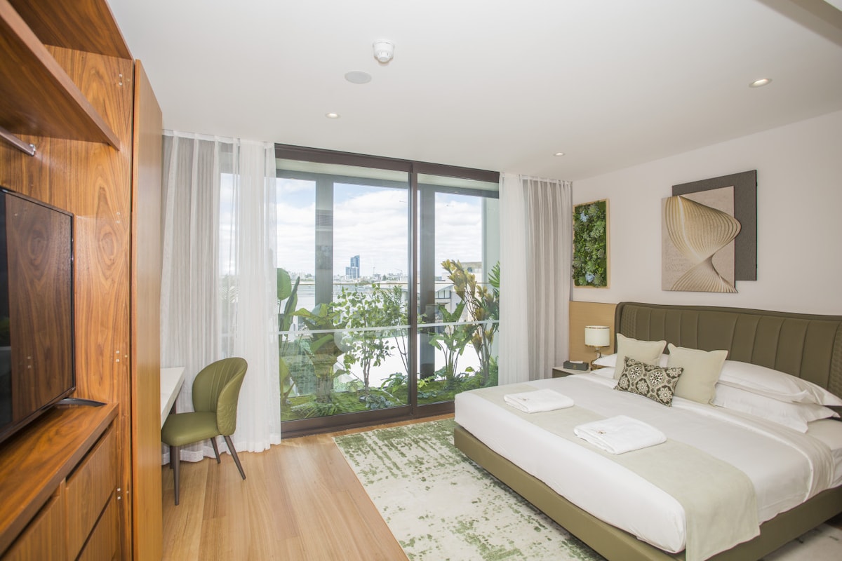 This stylish boutique accommodation is perfectly located in leafy East Perth on the banks of the beautiful Swan River - just across from Optus Stadium and with easy public transport to Perth city. Nearby is Victoria Gardens on the Cove inlet where you will find delightful cafes, restaurants and bars. Guest rooms have a luxury feel a King bed with ensuite x2 bathrooms one with shower and bath the other with toilet and vanity. Can have twin beds on request for extra charge