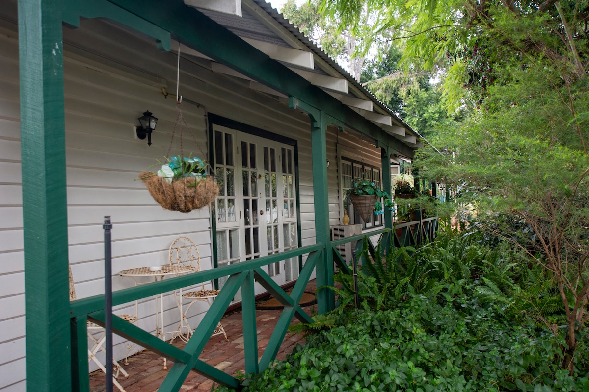 Silver Gypsy Flat adjoins our home. Key entry, secure steel window & door screens, a/c, table, chairs, pantry, induction cooktop, mini-oven, sandwich maker, frypan, kettle, toaster, pod coffee maker, juicer, glass oven, microwave, rice cooker, fridge/freezer, china, cutlery & glasses. Sofa bed, new 50" tv, lamps, queen bed, desk, chaise lounge, walk-in robe & ensuite, pillows, quilts & linen. Private garden, BBQ, patio table, chairs, brolly & free offroad parking. Late arrivals' Key Lock.