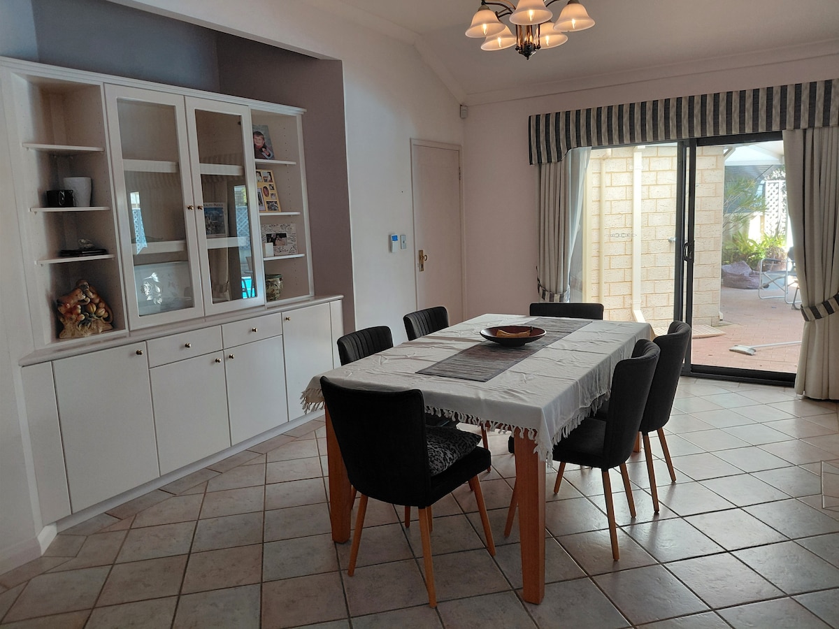 Explore Perth from our peaceful and convenient private unit. Decorated to emulate the West Australian coastal lifestyle, enjoy the spacious, light, airy, tranquil convenience. Take in the spectacular views just 10min walk to the river. The Dolphins, Osprey, Black Swans and an array of bird life will keep you company. An even shorter walk connects you to Perth via the train, just 12 min into the city. Fremantle is an easy 15min drive away and bus stop is 2min from your door.