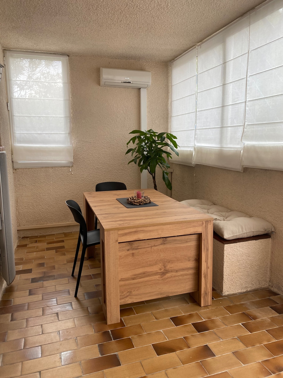 Un appartement de 35 m2. Pour couples ou solos, en balade ou pour le travail. Un endroit calme, mais plein centre ville du Puy Sainte Réparade. TV avec Netflix, Canal +, OCS, Disney +, Paramount. Lit double. Salle d’eau. Coin tisanerie / petit déjeuner. Équipé d’une bouilloire, machine à café, réfrigérateur, micro-onde, évier. Pas de table de cuisson. Lave-linge séchant. Possibilité de stationnement gratuit à 2 pas.