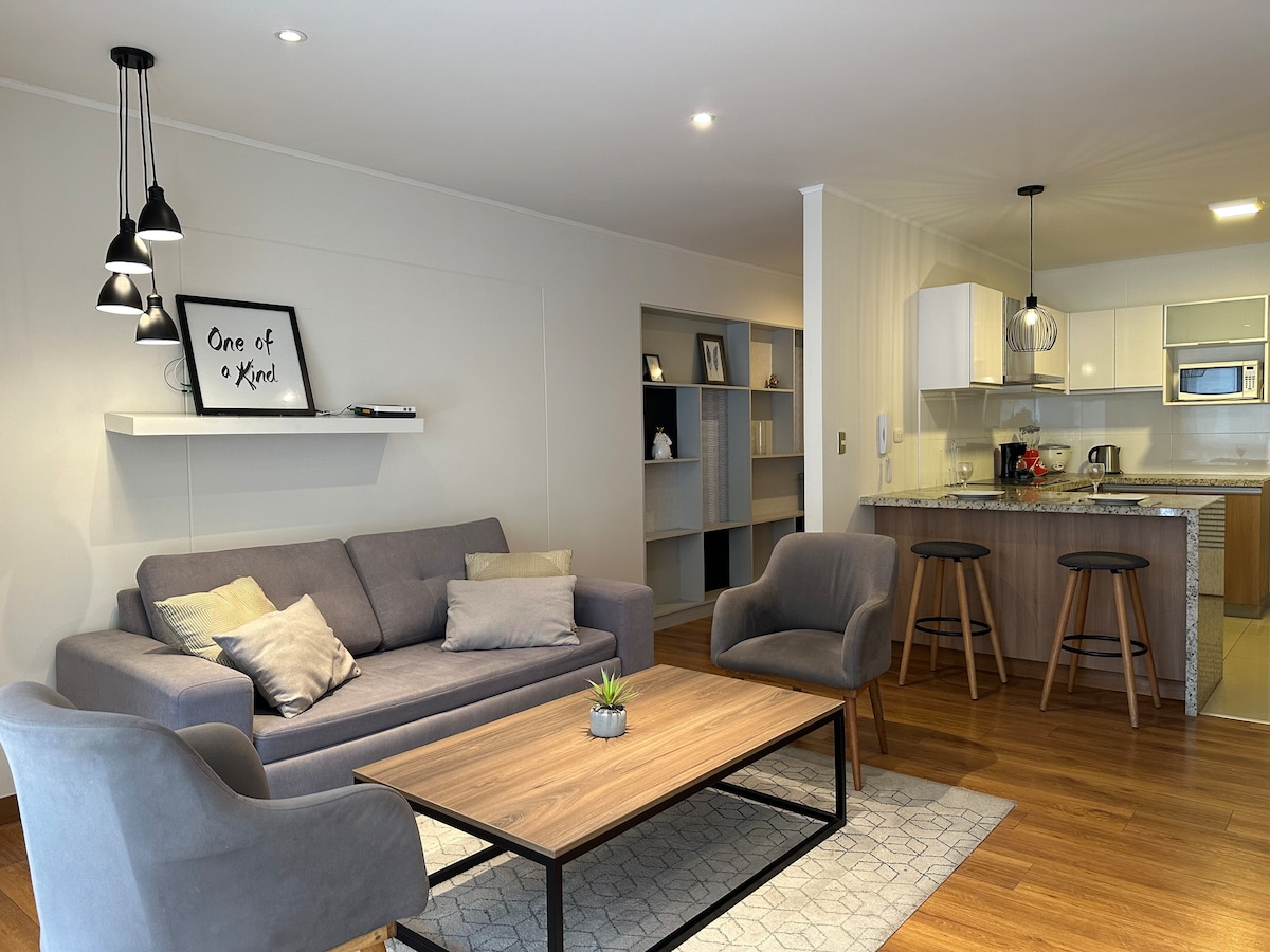 Remodeled Apartment! Located in Barranco, the most important central, cultural, romantic, and bohemian district of Lima; walkable surroundings. • Tourism & Business • 7th floor, safe and family-friendly condominium • Balcony • Spanish shower • Fully equipped kitchen • Washer+Dryer inside • Air conditioning • Concierge/Security 24h • 5min to Malecón/Miraflores • 10min to Business District • 20min to Historic Center • Close to bus, shops, restaurants, and entertainment