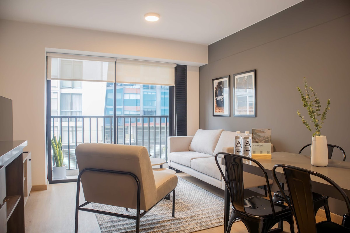★ "It has everything you need to spend an incredible stay." Located in Barranco, the most important downtown, cultural, romantic and bohemian district of Lima; discover it by walking. • Tourism & Business • 3rd floor of a safe and family condominium. • Private balcony • Rain shower • Fully equipped Kitchen • Onsite Washer + Dryer • 24h Concierge & Vigilance • 5min to Malecón / Miraflores • 10min to Business area • 20min to Historical Center • Close to bus, shops, restaurants and entertainment