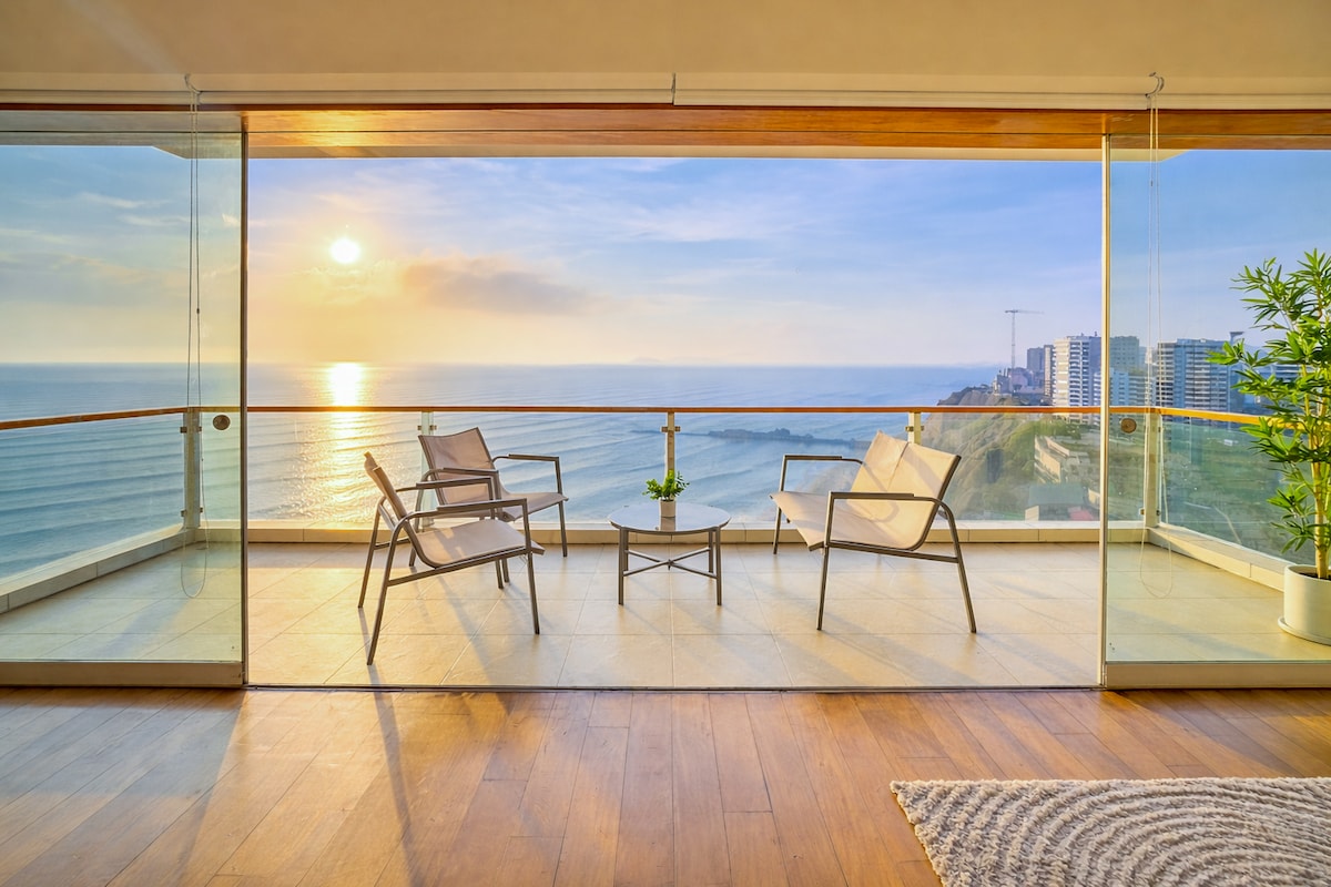 New and cozy apartment, located in the most exclusive tourist area between Barranco and Miraflores, offers the best and most spectacular views of Lima, a step away from Larcomar, the best restaurants and the Armendáriz descent. (Nuevo y acogedor departamento, ubicado en la zona turística mas exclusiva entre Barranco y Miraflores, ofrece una de las mejores y mas espectaculares vistas de Lima, a un paso de Larcomar, de los mejores restaurantes y la bajada de Armendáriz)