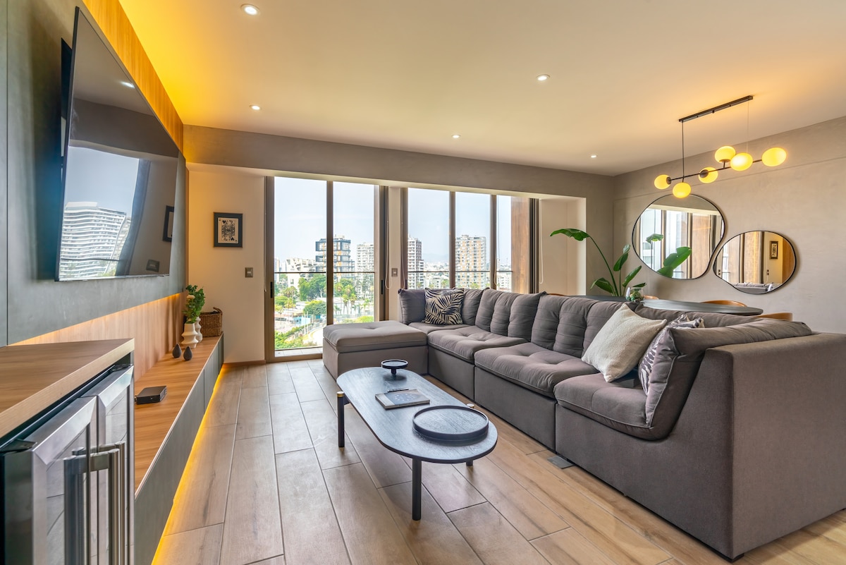 Luxurious Airbnb with breathtaking ocean views, blending modern elegance and ultimate comfort. A block way from the NEW “Puente de la Paz”. Relax in a chic, cozy space with state-of-the-art air conditioning, lightning-fast fiber optic Wi-Fi for remote work, and premium appliances. TOTO toilet. Walking distance from Maido the #1 restaurant in the world (2025) and Central (2023), plus top-tier eateries, artisanal coffee shops, museums, and Larcomar mall.