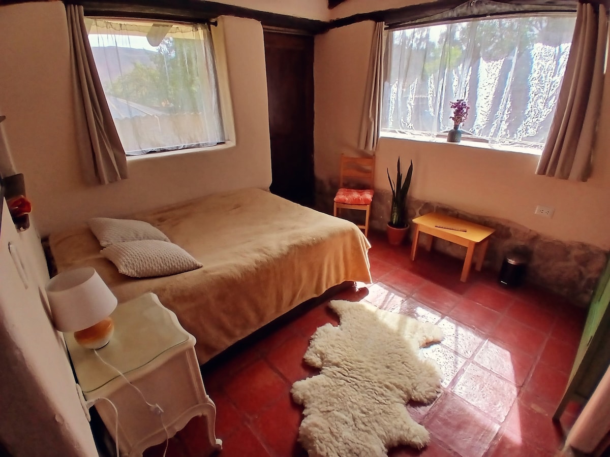 Take advantage of our welcome promotion! Stay near our warm family home in the Sacred Valley. Enjoy a private bathroom, garden views, and a peaceful setting surrounded by flowers and trees. Experience the serenity of Calca with all the comforts and connect with the local culture.