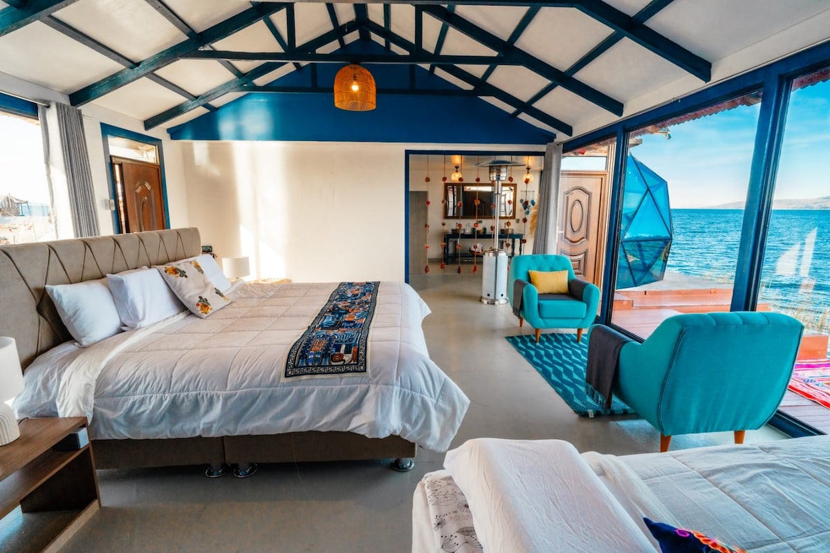 Un Alojamiento único en su tipo, nos encontramos en el lago mas paradisiaco de todo en Perú que alberga a una cultura muy singular Los nativos que habitan en islas flotantes ecológicas elaboradas con plantas acuáticas. Nuestro alojamiento les ofrece las mejores aventuras en el lago mas alto del mundo con vistas únicas e inigualables de todo el mundo Vistas al amanecer, vistas al atardecer, vistas a la ciudad de puno y vistas al firmamento estrellado del Titicaca.